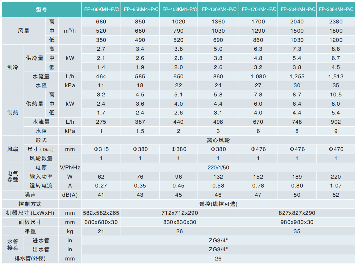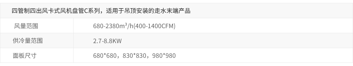 四管制四出風卡式風機盤管C系列